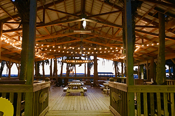 The Gator Pavilion is a 2,400-square-foot, swamp-side covered deck with seating for up to 100 guests. There are over 15 large rocking chairs, high-top bar seating directly facing the swamp and table seating areas with a great view of the Everglades.